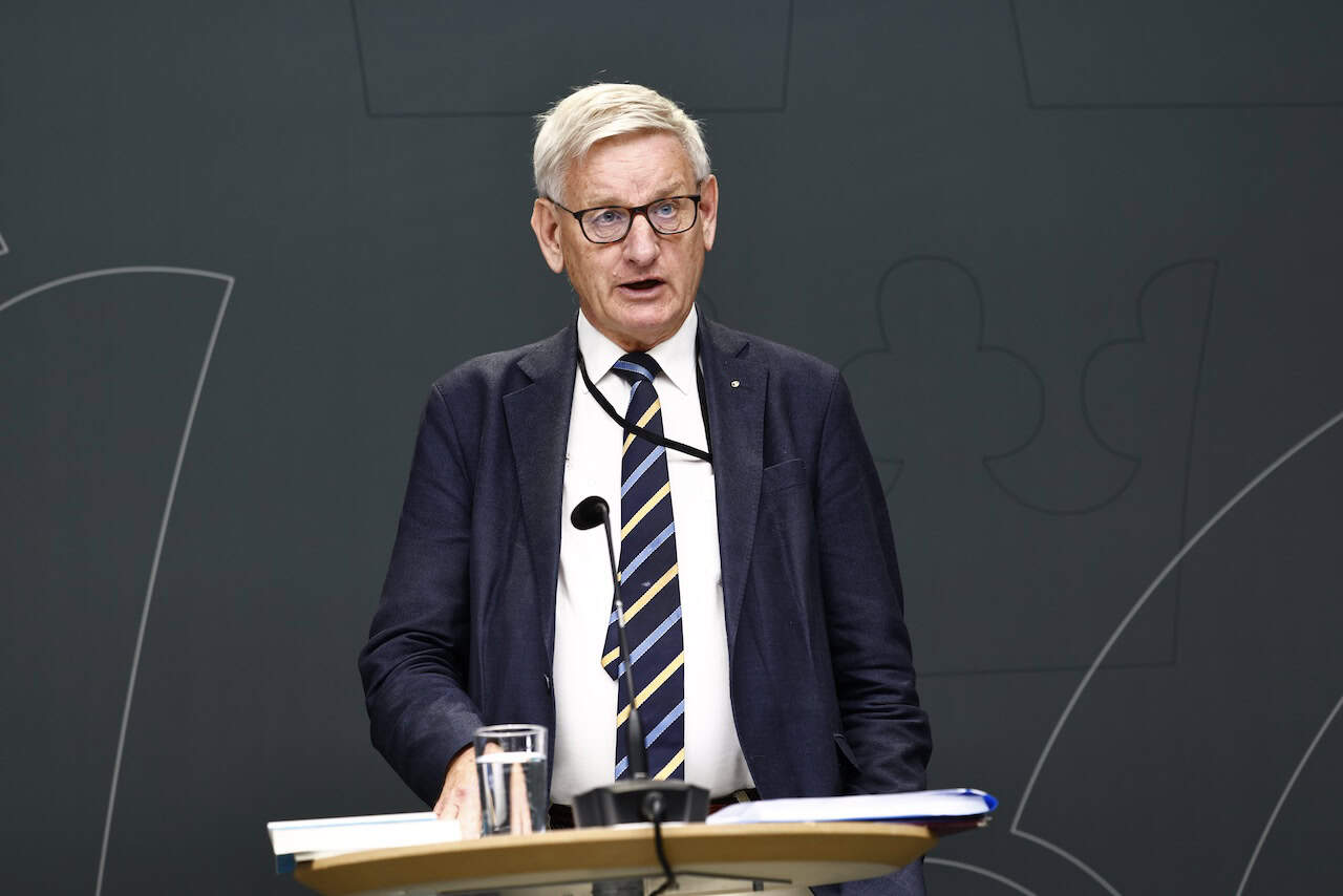 Särskilda utredaren Carl Bildt under pressträff i juni i samband med överlämnande av slutbetänkandet av underrättelseutredningen.