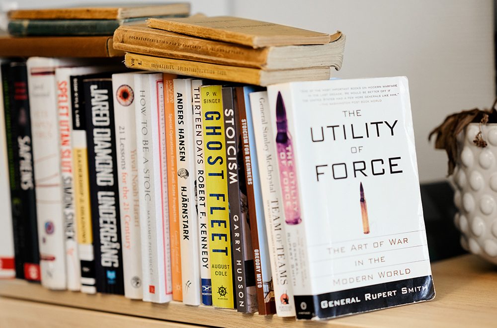 På fönsterbrädan i hans arbetsrum står Försvarsmaktens värdegrund inramad.